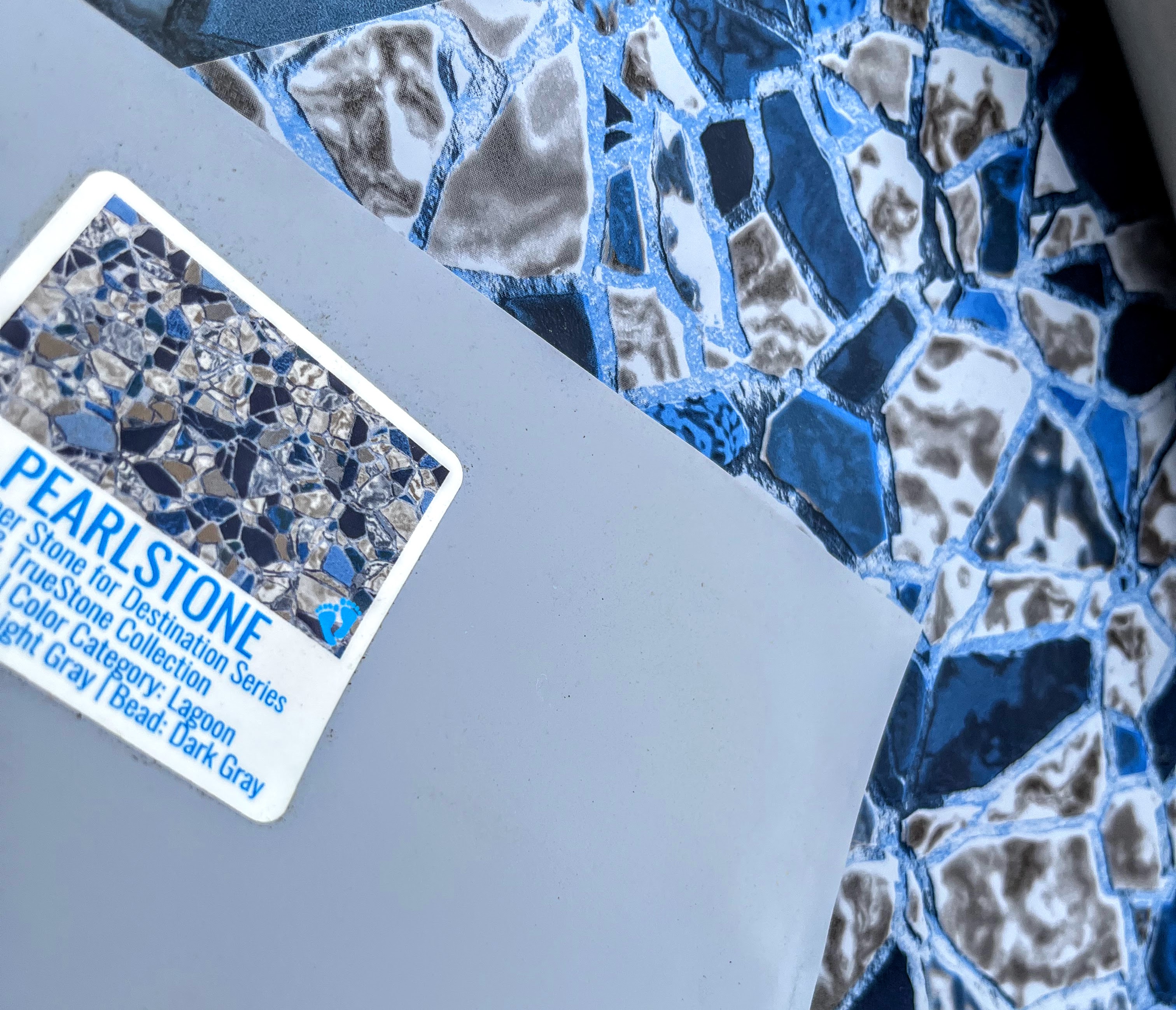 Our newest vinyl pool liner is Pearlstone with a gray back.