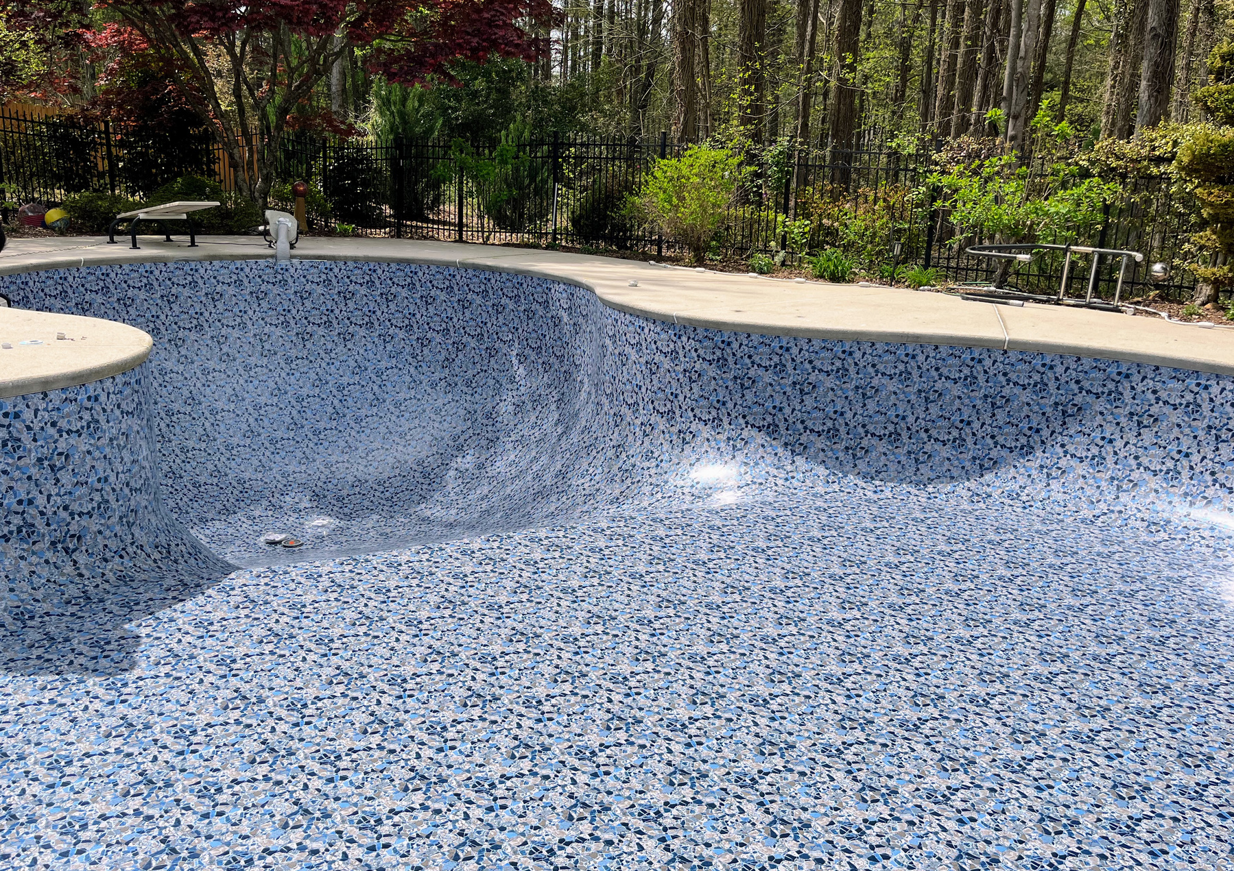 This time we chose a darker pool liner and pattern. Everyone who comes to the pool says how much better it looks. We like it much better as well. The picture at the top of the page is our new pool liner. Be sure to select a inground swimming pool liner with a pattern - do not choose a solid color liner.